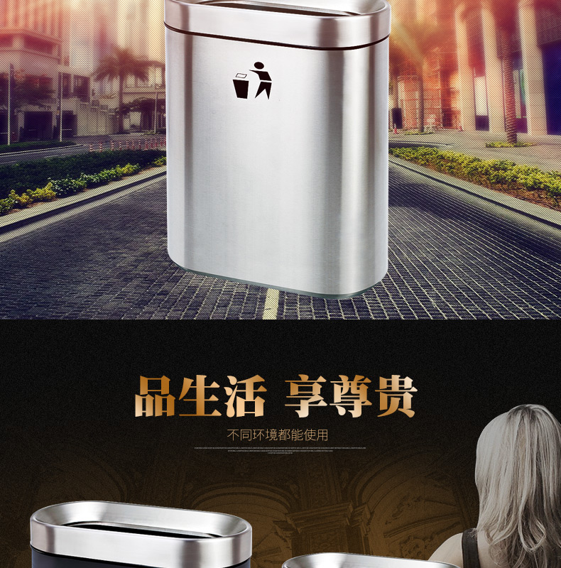 不銹鋼垃圾桶HT-BXG1120,該產品整體采用優(yōu)質的不銹鋼鋼板生產加工而成,產品顏色為:原色,規(guī)格為長520mm寬280mm高720mm,本款單口室內不銹鋼垃圾桶采用模具沖壓或折邊拼焊成型;表面處理有鏡面與砂面兩種.金屬框架選用高品質鋼板折邊拼焊成型,表面防銹處理后經(jīng)戶外粉末噴涂;木材經(jīng)烘干、打磨、倒角、防腐處理后表面噴涂進口抗紫外線聚脂漆.生產工藝:不銹鋼垃圾桶選用優(yōu)質不銹鋼經(jīng)下料—折合—壓筋—沖孔―成型,氬氟焊、打磨、拋光、打臘.頂蓋采用滾壓成型技術,HT-BXG1120不銹鋼垃圾桶也可按照您的具體需求可定制尺寸和顏色,可印制LOGO及文字,詳見說明或咨詢客服.環(huán)泰愿為環(huán)保護航,一切為您,放心采購。