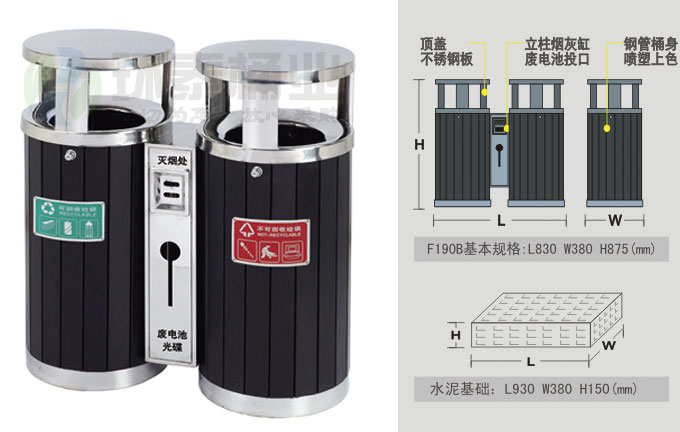 7、通常配有鍍鋅鋼板內(nèi)桶,方便垃圾收集清倒與清潔.
