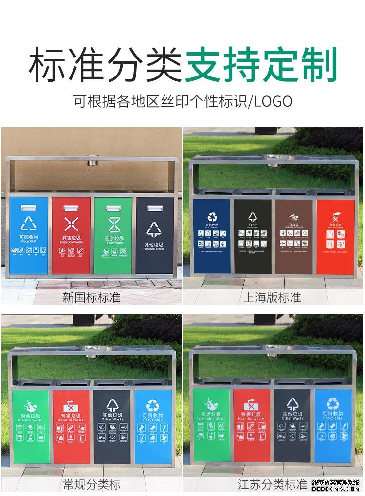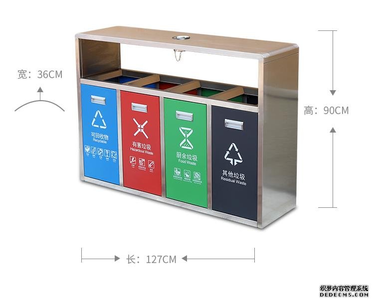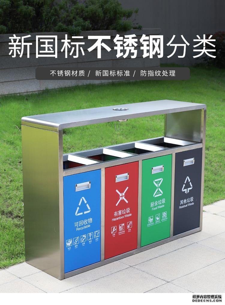 不銹鋼垃圾桶HT-BXG1960,該產(chǎn)品整體采用優(yōu)質(zhì)的不銹鋼鋼板生產(chǎn)加工而成,產(chǎn)品顏色為:不銹鋼原色,規(guī)格為長(zhǎng)1270mm寬360mm高900mm,本款戶外不銹鋼四分類垃圾桶,HT-BXG1960不銹鋼垃圾桶也可按照您的具體需求,詳見(jiàn)說(shuō)明或咨詢客服.環(huán)泰愿為環(huán)保護(hù)航,一切為您,放心采購(gòu)。