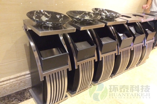 高端大氣的不銹鋼材質(zhì),配合優(yōu)雅的造型,頂端點綴了紋理豐富的鋼化玻璃滅煙盆,放在營銷大廳里,很恰當(dāng)?shù)娜谌肓搜b修精致的大廳環(huán)境,檔次感提升不少.