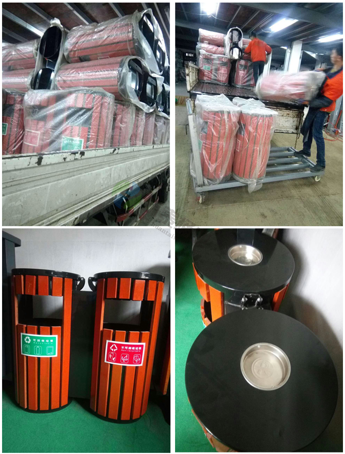 貴州仁懷轉(zhuǎn)盤金鑫廣場客戶在我司采購一批分類鋼木垃圾桶