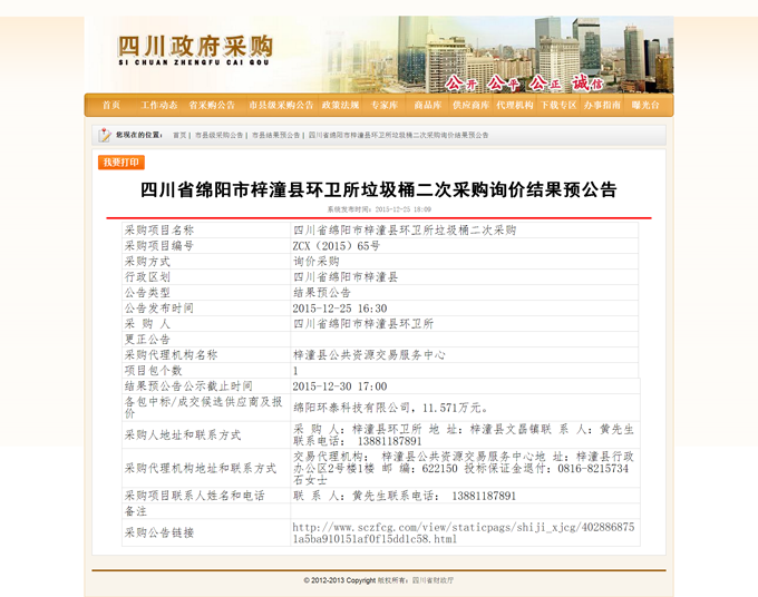 環(huán)泰桶業(yè)成功中標(biāo)梓潼縣環(huán)衛(wèi)所垃圾清運車與垃圾桶采購