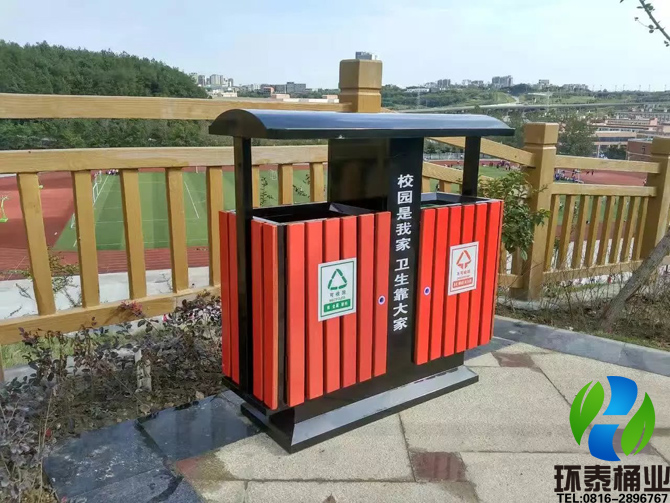 這次綿陽外國語學(xué)校訂購的是一批鋼木分類垃圾桶HT-GM6870和鋼木果皮箱HT-GM6510。