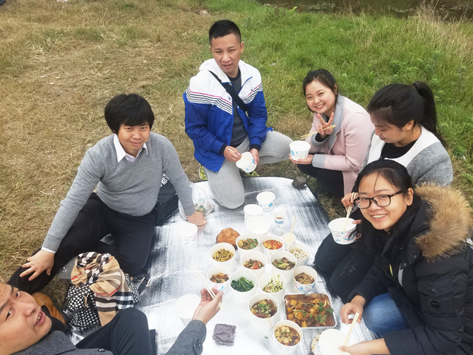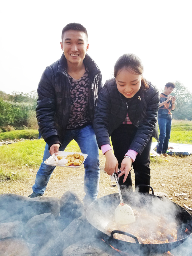 在做飯的過程中,雖然眼睛和鼻子被煙熏的很難受,可沒人抱怨,更沒有人退縮;盡管手被火考的很痛,但那些“廚師”們沒有在意,他們在意的是鍋里的飯菜有沒有做好:他們的這種精神讓我感到環(huán)泰科技全體上下的魅力是那樣的動人,它的精神是那樣的讓大家五體投地。這種熱火朝天的場面只能意會不能言傳。飯做好了,當同事們吃著自己做的,用最原始的方法燒出來的飯菜,我們品嘗的不僅是美味佳肴更是大家在一起的幸福,讓我們學(xué)會了珍惜,珍惜同事間的友誼,珍惜集體,珍惜眼前的一切。