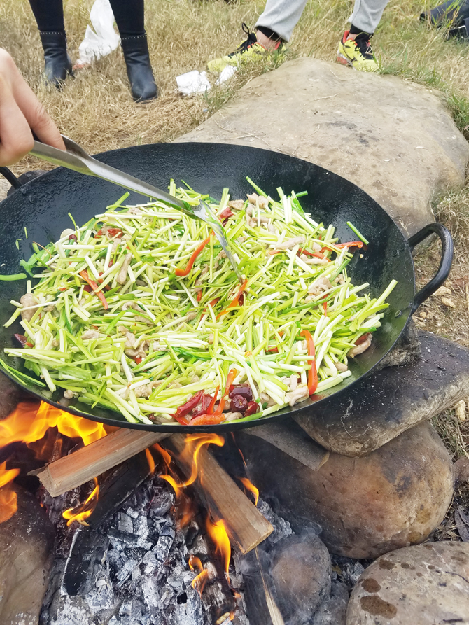 唐總更是不甘示弱,不止火生好了,連菜都已經(jīng)下鍋了。ps:雖然不知道蒜臺為什么要用水煮完才炒。