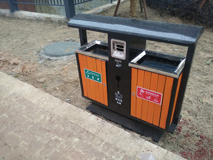 鋼木垃圾桶HT-GM6850,該產(chǎn)品整體采用優(yōu)質(zhì)的冷軋鋼板,鍍鋅鋼板,防腐木生產(chǎn)加工而成,產(chǎn)品顏色為:黑色+原木色,規(guī)格為長1000mm寬360mm高1000mm,本款不銹鋼包邊鋼木分類垃圾桶制造工藝采用:1、鋼木垃圾桶桶身采用優(yōu)質(zhì)進(jìn)口防腐木、進(jìn)口山樟木或水曲柳制作,先經(jīng)過烘干脫水、壓刨、打磨、倒角、防腐處理后表面噴涂進(jìn)口抗紫外線聚脂漆等工序,再經(jīng)高溫噴塑處理,可抑制微生物的寄生、繁殖與蛀蝕,具有防水、防霉等保護(hù)功效,能夠抑制霉菌和藻類生物的生長,可有效減少紫外線導(dǎo)致的褪色,延長木材在戶外環(huán)境中的使用壽命.客戶也可以采用塑木代替實(shí)木.2、鋼木垃圾箱采用鍍鋅鋼板材質(zhì)制作,鋼結(jié)構(gòu)均經(jīng)過酸洗、磷化表面處理,然后再使用高溫噴塑工藝,使垃圾桶更加經(jīng)久耐用,防腐、防銹,美觀大方.3、鋼木果皮箱采用內(nèi)部膨脹螺栓固定的方式,不易推到,不易被偷盜,使垃圾桶更加安全牢實(shí).隱形固定還可以防止撞傷行人.