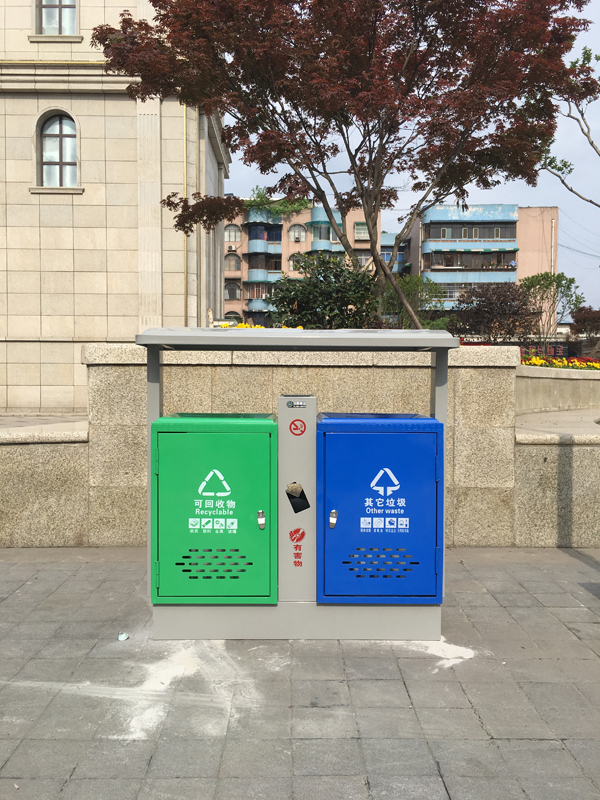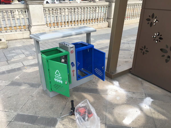 鋼制垃圾桶HT-GZ001,該產(chǎn)品整體采用優(yōu)質(zhì)的鍍鋅鋼板生產(chǎn)加工而成,產(chǎn)品顏色為:藍(lán)色,綠色,淺灰,規(guī)格為長1000mm寬400mm高980mm,本款新款市政街道鋼制分類垃圾桶整體采用優(yōu)質(zhì)冷軋鋼板,經(jīng)折彎沖壓一次性成型.產(chǎn)品一律用室外粉靜電噴塑,經(jīng)過180°的高溫,限度延長了垃圾桶的使用壽命,使垃圾桶顏色持久不變,亮麗如新.表面經(jīng)除油——清洗——酸洗——清洗——表調(diào)——磷化——清洗——烘干——靜電粉末噴涂——高溫塑化——冷卻.噴涂粉末經(jīng)ISO9002質(zhì)量體系認(rèn)證,易保潔表面光滑之優(yōu)點(diǎn),不脫落,不起層。