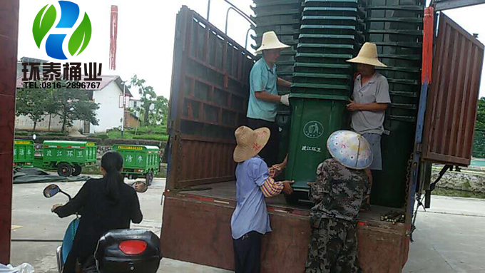 江西省龍南縣渡江鎮(zhèn)人民政府就是這樣一位通過(guò)網(wǎng)絡(luò)在我公司訂購(gòu)垃圾桶的客戶,渡江鎮(zhèn)政府為了緩解鎮(zhèn)上居民產(chǎn)生的生活垃圾日益趨多的惡劣環(huán)境,特意從我公司訂購(gòu)了一批240L掛車(chē)塑料垃圾桶(多色)HT-SL240G。