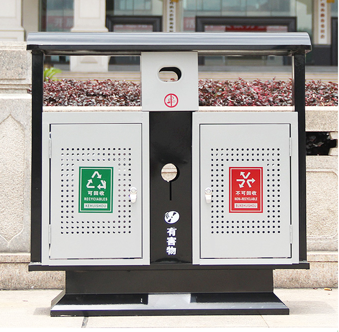 鋼制垃圾桶HT-GZ5690,該產(chǎn)品整體采用優(yōu)質(zhì)的鍍鋅鋼板生產(chǎn)加工而成,產(chǎn)品顏色為:黑灰色,規(guī)格為長1000mm寬350mm高1000mm,本款戶外分類鋼制北京桶整體采用優(yōu)質(zhì)鍍鋅板,經(jīng)折彎沖壓一次性成型.產(chǎn)品一律用室外粉靜電噴塑,經(jīng)過180°的高溫,限度延長了垃圾桶的使用壽命,使垃圾桶顏色持久不變,亮麗如新.表面經(jīng)除油——清洗——酸洗——清洗——表調(diào)——磷化——清洗——烘干——靜電粉末噴涂——高溫塑化——冷卻.噴涂粉末經(jīng)ISO9002質(zhì)量體系認證,易保潔表面光滑之優(yōu)點,不脫落,不起層。,HT-GZ5690鋼制垃圾桶也可按照您的具體需求可定制尺寸和顏色,可印制LOGO及文字。