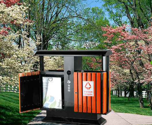 該產(chǎn)品整體采用優(yōu)質(zhì)的鍍鋅鋼板,防腐木生產(chǎn)加工而成,產(chǎn)品顏色為:架子黑色+木條原色,規(guī)格為長1000mm寬400mm高1000mm,本款戶外鋼木分類垃圾桶制造工藝采用:1、鋼木垃圾桶桶身采用優(yōu)質(zhì)進(jìn)口防腐木、進(jìn)口山樟木或水曲柳制作,先經(jīng)過烘干脫水、壓刨、打磨、倒角、防腐處理后表面噴涂進(jìn)口抗紫外線聚脂漆等工序,再經(jīng)高溫噴塑處理,可抑制微生物的寄生、繁殖與蛀蝕,具有防水、防霉等保護(hù)功效,能夠抑制霉菌和藻類生物的生長,可有效減少紫外線導(dǎo)致的褪色,延長木材在戶外環(huán)境中的使用壽命.客戶也可以采用塑木代替實(shí)木.2、鋼木垃圾箱采用鍍鋅鋼板材質(zhì)制作,鋼結(jié)構(gòu)均經(jīng)過酸洗、磷化表面處理,然后再使用高溫噴塑工藝,使垃圾桶更加經(jīng)久耐用,防腐、防銹,美觀大方.3、鋼木果皮箱采用內(nèi)部膨脹螺栓固定的方式,不易推到,不易被偷盜,使垃圾桶更加安全牢實(shí).隱形固定還可以防止撞傷行人.