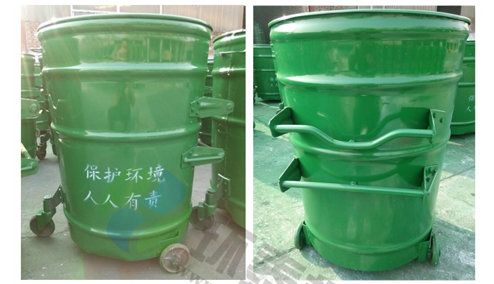 該產(chǎn)品整體采用優(yōu)質(zhì)的冷軋鋼板,鍍鋅鋼板生產(chǎn)加工而成,產(chǎn)品顏色為:可選綠色、藍色,規(guī)格為上口64厘米下口56厘米高87厘米,本款環(huán)衛(wèi)掛車綠色鐵皮圓形大鐵桶采用優(yōu)質(zhì)的1.5厚的鍍鋅板,桶身經(jīng)輪壓4道加強筋直接卷筒成型,桶身另加2道3cm寬加強筋,附件沖壓成型,采用二氧保護焊接,使桶身抗壓抗沖力,堅固耐用;底層處理:桶身經(jīng)打磨、拋丸、砂洗、酸洗、硫化,桶身噴涂:首先采用防銹漆噴涂后,再進行表層優(yōu)質(zhì)戶外油漆噴涂烘干而成;固定架采用:螺絲固定并整體墊圈加點焊;加厚型大鐵桶為通身內(nèi)部:墊片加厚,墊片形狀成工字型,通身外部:上下結(jié)合,部位用墊片連接。