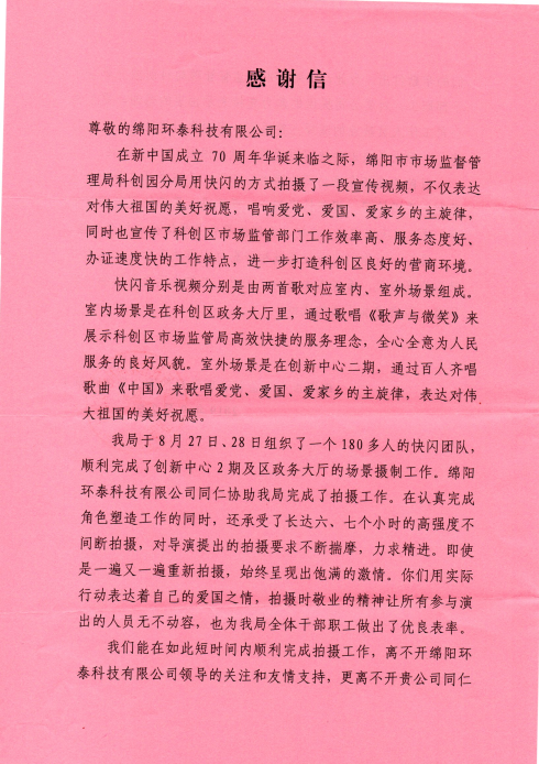 環(huán)泰用“歌聲與微笑”來迎接“中國”華誕70周年