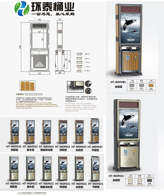 鋼木垃圾桶HT-WDF031,該產(chǎn)品整體采用優(yōu)質(zhì)的電解溶鍍鋅板生產(chǎn)加工而成,產(chǎn)品顏色為:深灰色+柚木色,規(guī)格為長910mm寬402mm高2160mm,本款萬德福鋼木廣告垃圾桶,HT-WDF031鋼木垃圾桶也可按照您的具體需求可印制LOGO及文字,詳見說明或咨詢客服.環(huán)泰愿為環(huán)保護航,一切為您,放心采購。