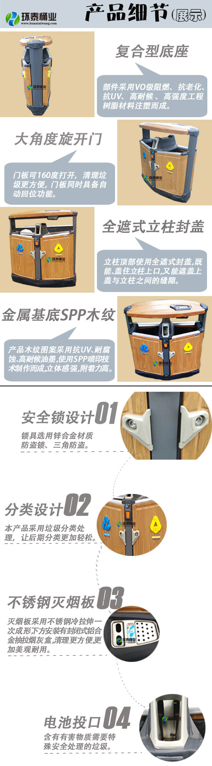 鋼木垃圾桶HT-WDF568,該產(chǎn)品整體采用優(yōu)質(zhì)的電解溶鍍鋅板,塑料生產(chǎn)加工而成,產(chǎn)品顏色為:原木色,規(guī)格為長(zhǎng)960mm寬485mm高1000mm,本款萬(wàn)德福分類木紋垃圾桶,HT-WDF568鋼木垃圾桶也可按照您的具體需求僅定制顏色,可印制LOGO及文字,詳見(jiàn)說(shuō)明或咨詢客服.環(huán)泰愿為環(huán)保護(hù)航,一切為您,放心采購(gòu)。