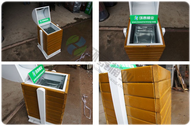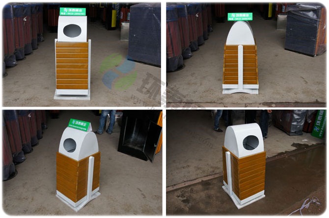 鋼木垃圾桶HT-GM6650,該產(chǎn)品整體采用優(yōu)質(zhì)的冷軋鋼板,鍍鋅鋼板,防腐木生產(chǎn)加工而成,產(chǎn)品顏色為:白色+原木色,規(guī)格為長400mm寬350mm高800mm,本款三角造型戶外鋼木垃圾桶制造工藝采用:1、鋼木垃圾桶桶身采用優(yōu)質(zhì)進口防腐木、進口山樟木或水曲柳制作,先經(jīng)過烘干脫水、壓刨、打磨、倒角、防腐處理后表面噴涂進口抗紫外線聚脂漆等工序,再經(jīng)高溫噴塑處理,可抑制微生物的寄生、繁殖與蛀蝕,具有防水、防霉等保護功效,能夠抑制霉菌和藻類生物的生長,可有效減少紫外線導致的褪色,延長木材在戶外環(huán)境中的使用壽命.客戶也可以采用塑木代替實木.2、鋼木垃圾箱采用鍍鋅鋼板材質(zhì)制作,鋼結(jié)構(gòu)均經(jīng)過酸洗、磷化表面處理,然后再使用高溫噴塑工藝,使垃圾桶更加經(jīng)久耐用,防腐、防銹,美觀大方.3、鋼木果皮箱采用內(nèi)部膨脹螺栓固定的方式,不易推到,不易被偷盜,使垃圾桶更加安全牢實.隱形固定還可以防止撞傷行人.