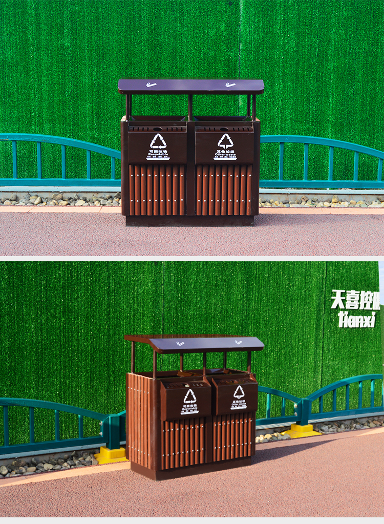 戶外塑木分類垃圾桶HT-GM6670