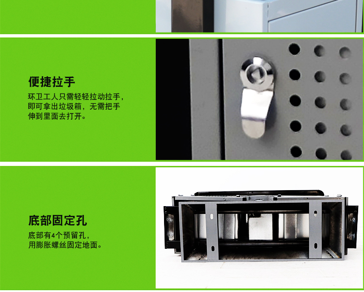 鋼制垃圾桶一種存放垃圾的容器,使用冷軋鋼板或者鍍鋅鋼板制作而成.因為產(chǎn)品表面經(jīng)過噴塑和酸處理,防腐蝕性能更高.采用酸處理+噴塑處理,更利于防銹,增加使用壽命.這是鋼制垃圾箱所具有的強大的優(yōu)勢.