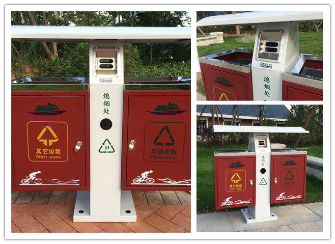 鋼制垃圾桶HT-GZ1668,該產(chǎn)品整體采用優(yōu)質(zhì)的鍍鋅鋼板生產(chǎn)加工而成,產(chǎn)品顏色為:紅色,規(guī)格為長(zhǎng)960mm寬460mm高1000mm,本款戶外分類鋼制垃圾桶本款戶外分類沖孔鋼制垃圾桶整體采用優(yōu)質(zhì)鍍鋅板,經(jīng)折彎沖壓一次性成型.產(chǎn)品一律用室外粉靜電噴塑,經(jīng)過(guò)180°的高溫,限度延長(zhǎng)了垃圾桶的使用壽命,使垃圾桶顏色持久不變,亮麗如新.表面經(jīng)除油——清洗——酸洗——清洗——表調(diào)——磷化——清洗——烘干——靜電粉末噴涂——高溫塑化——冷卻.噴涂粉末經(jīng)ISO9002質(zhì)量體系認(rèn)證,易保潔表面光滑之優(yōu)點(diǎn),不脫落,不起層。,HT-GZ1668鋼制垃圾桶也可按照您的具體需求可印制LOGO及文字,詳見說(shuō)明或咨詢客服.環(huán)泰愿為環(huán)保護(hù)航,一切為您,放心采購(gòu)。