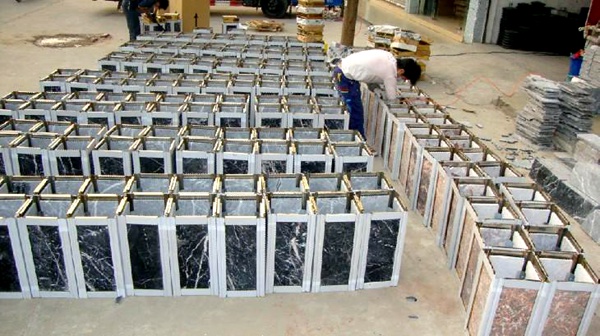大理石板材經(jīng)過加工以后,就可以用螺絲固定在垃圾桶上,這樣大理石垃圾桶就基本成型了。