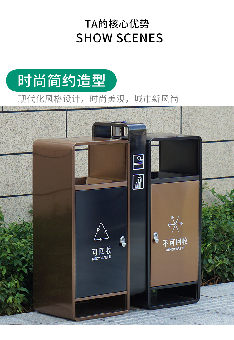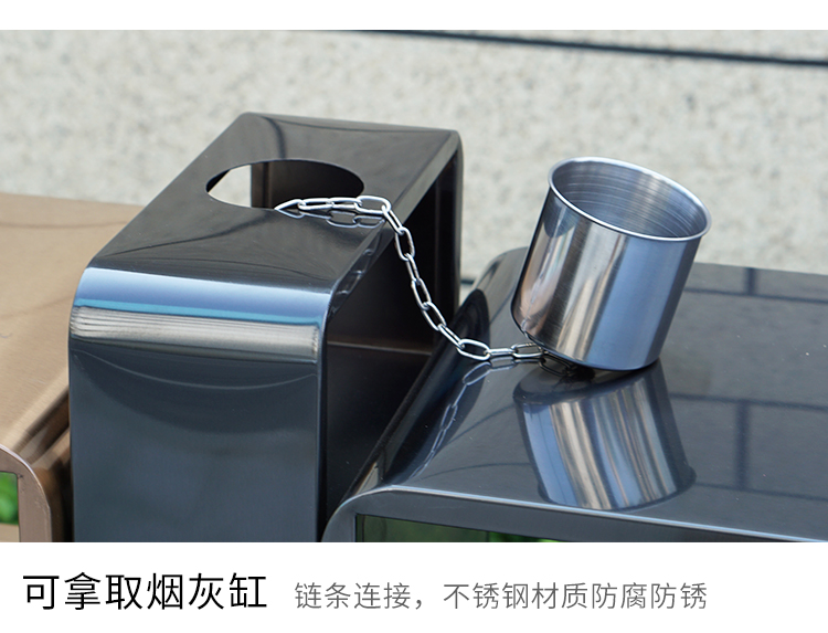 戶外鋼制垃圾桶HT-DXB5100,該產(chǎn)品整體采用優(yōu)質(zhì)的鍍鋅鋼板生產(chǎn)加工而成,產(chǎn)品顏色為:黑灰色 ,規(guī)格為長(zhǎng)880mm寬330mm高980mm,本款戶外鈦金分類垃圾桶,HT-DXB5100戶外鋼制垃圾桶也可按照您的具體需求可定制尺寸和顏色,可印制LOGO及文字,詳見(jiàn)說(shuō)明或咨詢客服.環(huán)泰愿為環(huán)保護(hù)航,一切為您,放心采購(gòu)。