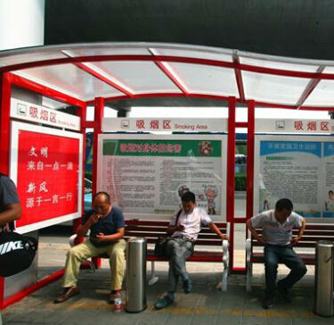 濟南長途汽車總站建室外吸煙區(qū) 設遮陽棚座椅垃圾桶