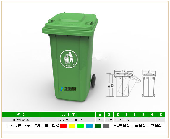 HT-SL3400塑料垃圾桶也可按照您的具體需求僅定制顏色,可印制LOGO及文字,詳見說明或咨詢客服.環(huán)泰愿為環(huán)保護航,一切為您,放心采購。