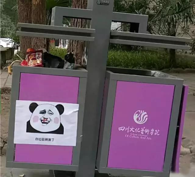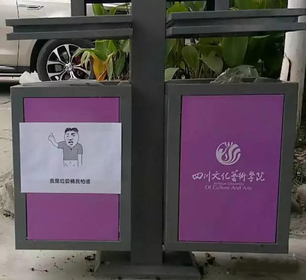 四川文化藝術(shù)學院內(nèi)的垃圾桶上,