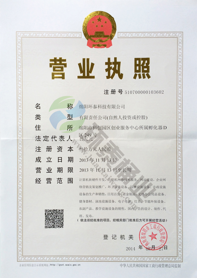 環(huán)泰營(yíng)業(yè)執(zhí)照(正本)