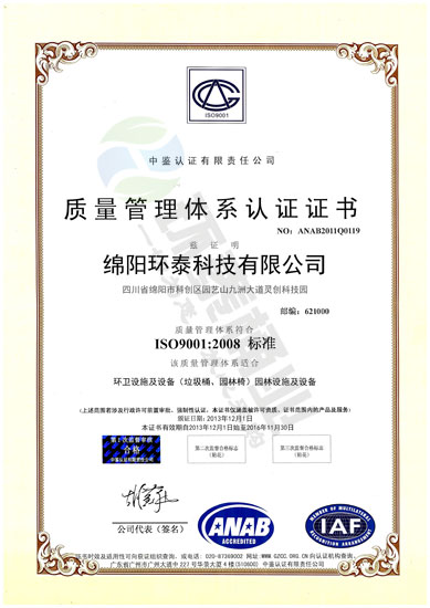 質(zhì)量體系認(rèn)證書(shū)(中)